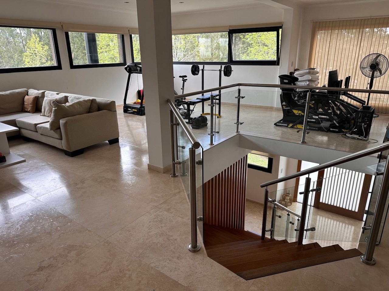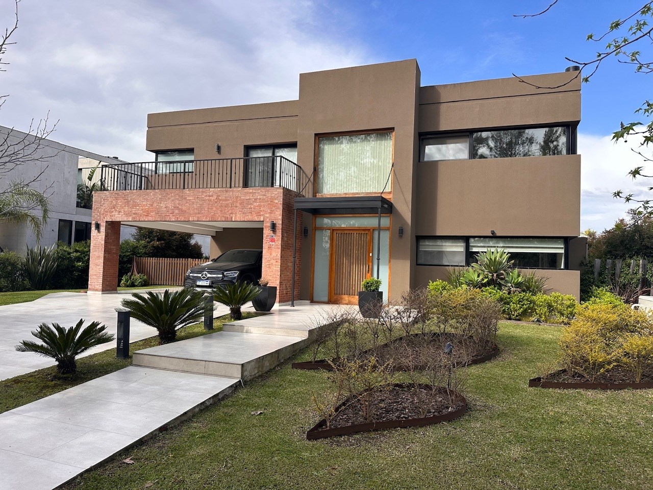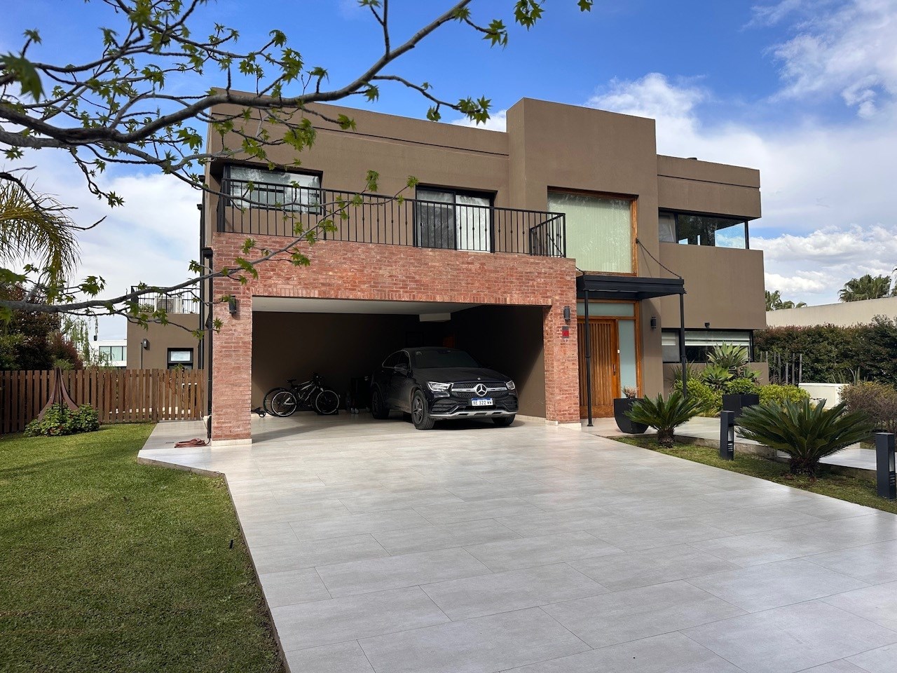 Racionalista, funcional, de líneas rectas y al mismo tiempo cálida, vista a la reserva, con amplios espacios que invitan a compartir momentos del día. Al ingreso amplio hall, escalera de madera maciza con barandas de blindex que le da categoría. Doble circulación a cocina y living comedor. Amplio toilette. El living comedor cómodo que al ser bien largo queda bien separado, pasa lo mismo con la cocina la cual es amplia con isla y comedor diario. Equipada con alacenas, bajo mesadas, horno 6 hornallas, extractor, lavavajillas, heladera doble, amplia bacha de acero inoxidable, doble despensa. Amplio lavadero y amplio cuarto exterior de guardado. Baño exterior. Galería con cerramiento de pliegues, uno de los ambientes más utilizados, ventiladores de techo, aire acondicionado, parrilla con barra, bacha y cocina. Muy linda vista al jardin, reserva y a la pileta con borde infinito. Tranquila y privada. El acceso vehicular es doble, con espacio para 2 vehículos cubiertos y 4 descubiertos. En planta alta nos encontramos con un espectacular playroom de grandes dimensiones, hoy lo utilizan como lugar de estar, gym y zona de entretenimiento. Este amplio espacio vincula a los 3 dormitorios y al escritorio. Los dormitorios secundarios tienen vista al jardín y son en semi suite. La Master suite tiene salida a terraza, vestidor y amplio baño con bañadera y box de ducha. La calefacción es por losa radiante a Gas, aires acondicionados en todos los ambientes, cortinas roller y sunscreen de acuerdo a las necesidades, pisos de mármol travertinos Grandes, puertas de madera maciza, aberturas de aluminio DVH. La casa está impecable, lista para mudarse.
