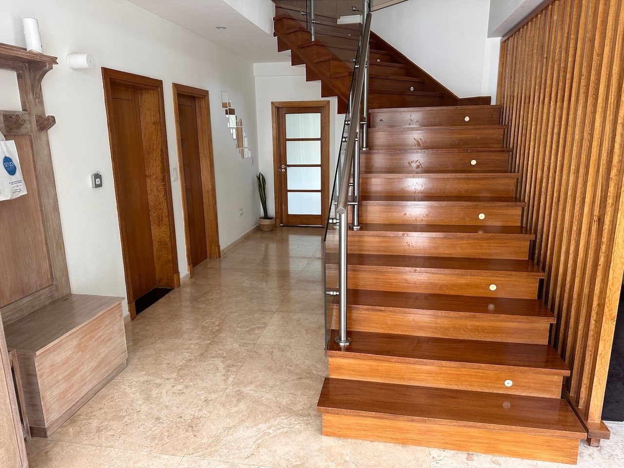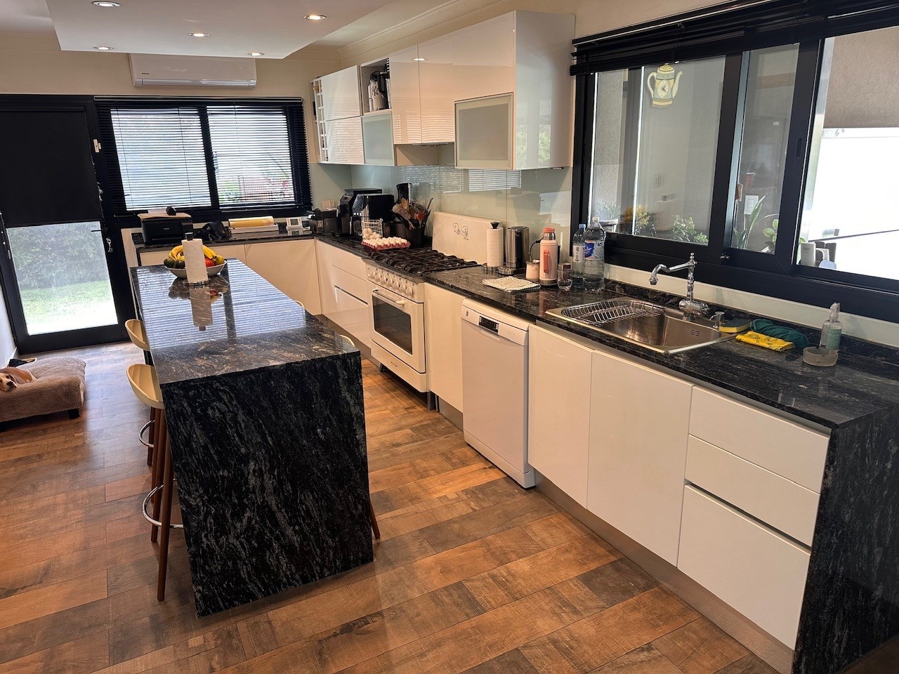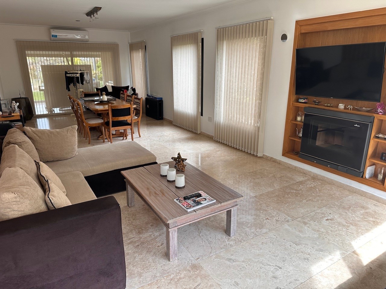 Racionalista, funcional, de líneas rectas y al mismo tiempo cálida, vista a la reserva, con amplios espacios que invitan a compartir momentos del día. Al ingreso amplio hall, escalera de madera maciza con barandas de blindex que le da categoría. Doble circulación a cocina y living comedor. Amplio toilette. El living comedor cómodo que al ser bien largo queda bien separado, pasa lo mismo con la cocina la cual es amplia con isla y comedor diario. Equipada con alacenas, bajo mesadas, horno 6 hornallas, extractor, lavavajillas, heladera doble, amplia bacha de acero inoxidable, doble despensa. Amplio lavadero y amplio cuarto exterior de guardado. Baño exterior. Galería con cerramiento de pliegues, uno de los ambientes más utilizados, ventiladores de techo, aire acondicionado, parrilla con barra, bacha y cocina. Muy linda vista al jardin, reserva y a la pileta con borde infinito. Tranquila y privada. El acceso vehicular es doble, con espacio para 2 vehículos cubiertos y 4 descubiertos. En planta alta nos encontramos con un espectacular playroom de grandes dimensiones, hoy lo utilizan como lugar de estar, gym y zona de entretenimiento. Este amplio espacio vincula a los 3 dormitorios y al escritorio. Los dormitorios secundarios tienen vista al jardín y son en semi suite. La Master suite tiene salida a terraza, vestidor y amplio baño con bañadera y box de ducha. La calefacción es por losa radiante a Gas, aires acondicionados en todos los ambientes, cortinas roller y sunscreen de acuerdo a las necesidades, pisos de mármol travertinos Grandes, puertas de madera maciza, aberturas de aluminio DVH. La casa está impecable, lista para mudarse.