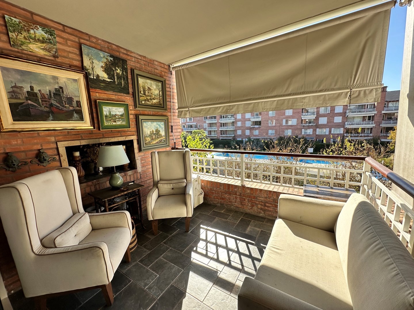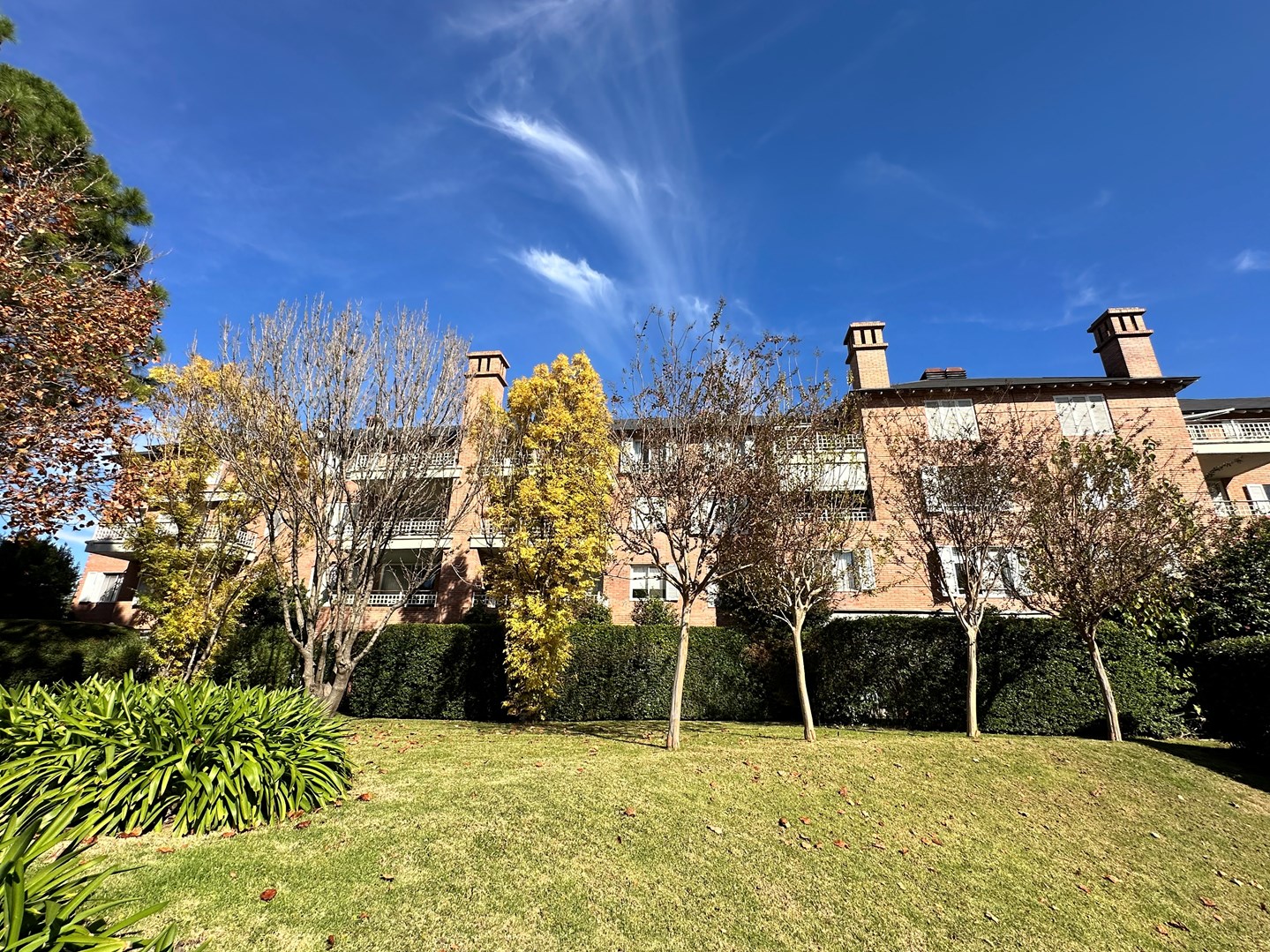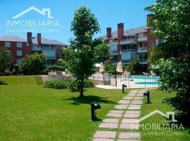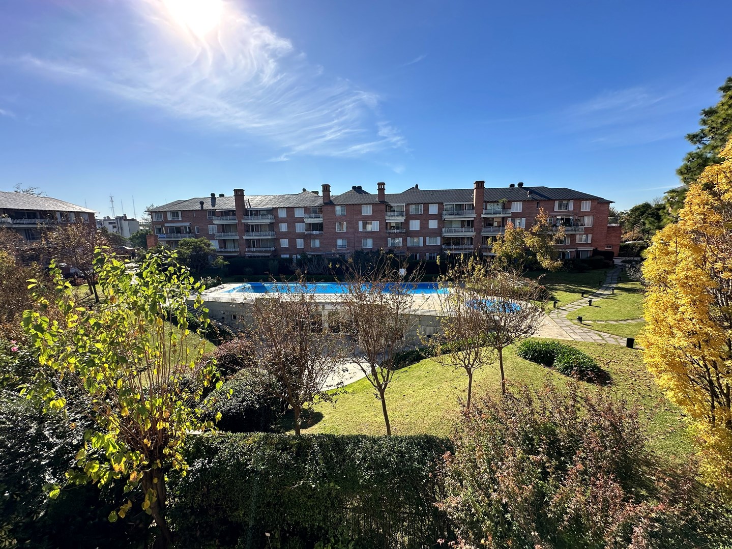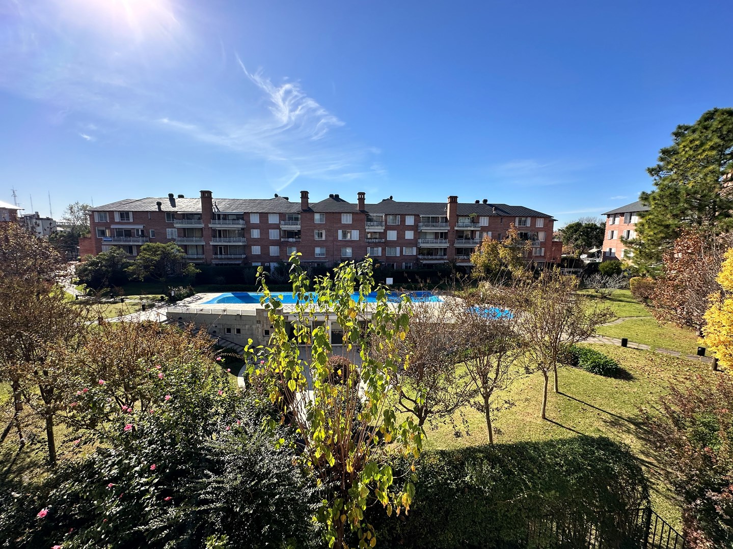 Departamento en Alquiler en Jardines de San Isidro 1. 2 dormitorios con 2 baños completos, dos aires acondicionados, cocina con espacio para lavadero y bacha, living comedor de 6 x 3,5, balcon de 3,5 x 2,5 con parrilla, muy linda vista a los jardines y la pileta, Excelente orientación Noreste. Amplia cochera. Gastos Septiembre Expensas $700mil ABL $63mil